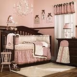 A dreamy arrangement of fabrics in a romantic color way with mauve, cream and accents of brown creates a perfect nursery for your little princess. This Six Piece Crib Set includes a quilt, bumper, sheet, dust ruffle, diaper stacker, and valance.